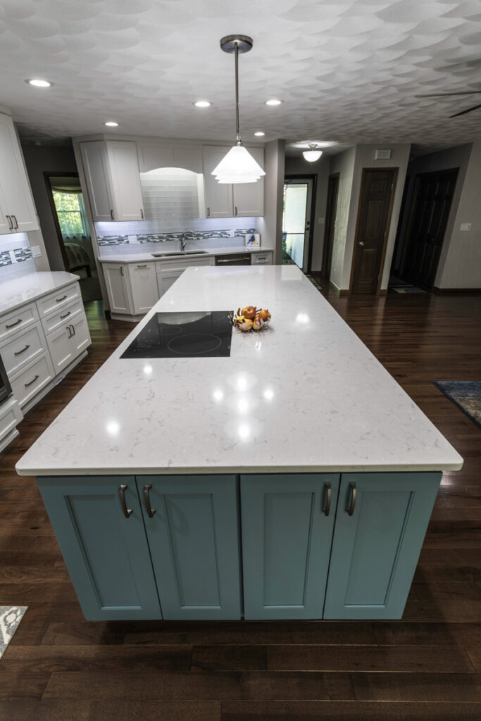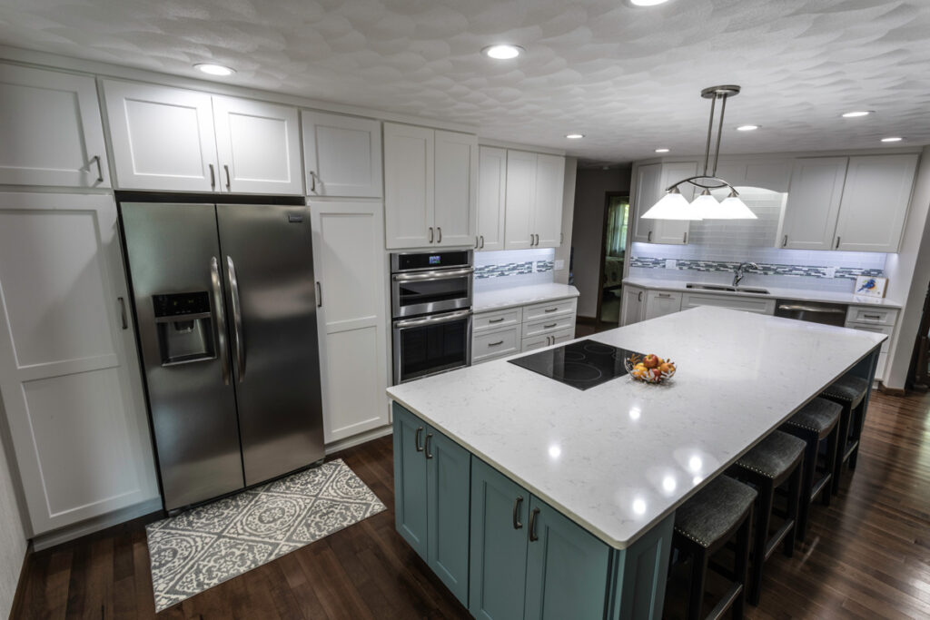 It’s a beautiful two tone design that features Bertch Kitchen+ cabinetry and Cambria quartz countertops.
