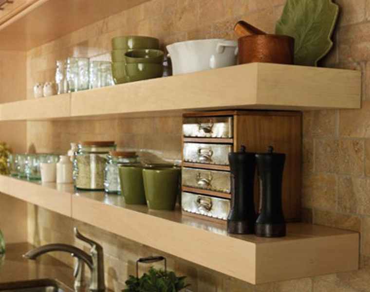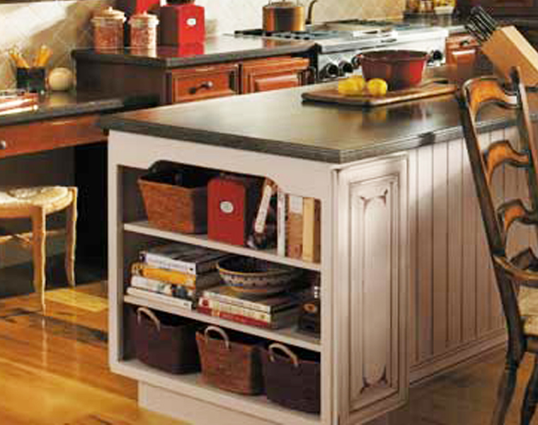 Shelves at the end of your cabinets allow for open or closed storage areas for books, messages, flatware, cookware and more.