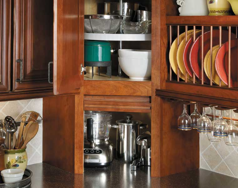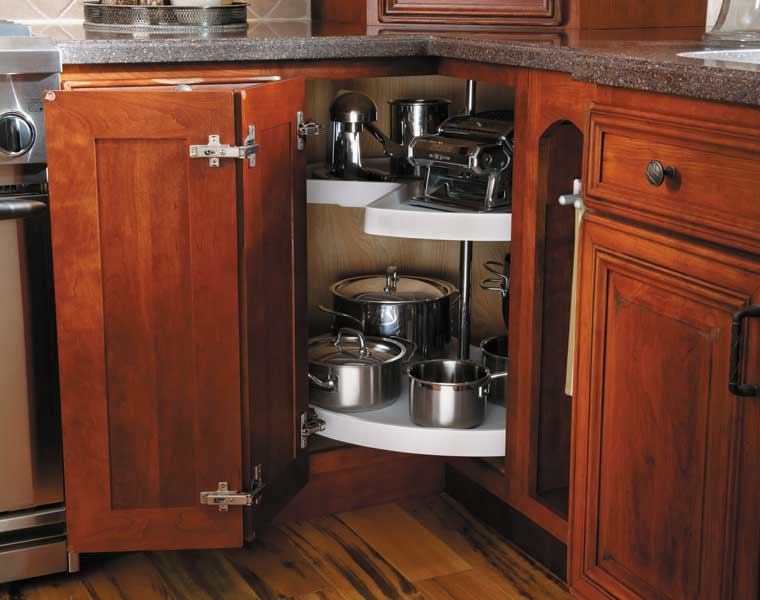 These corner storage options are a great way to keep everything within reach. They are easily accessible with a simple spin and come in single or multi-tiered forms.