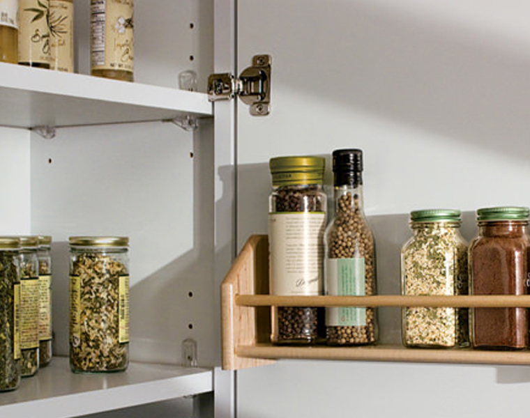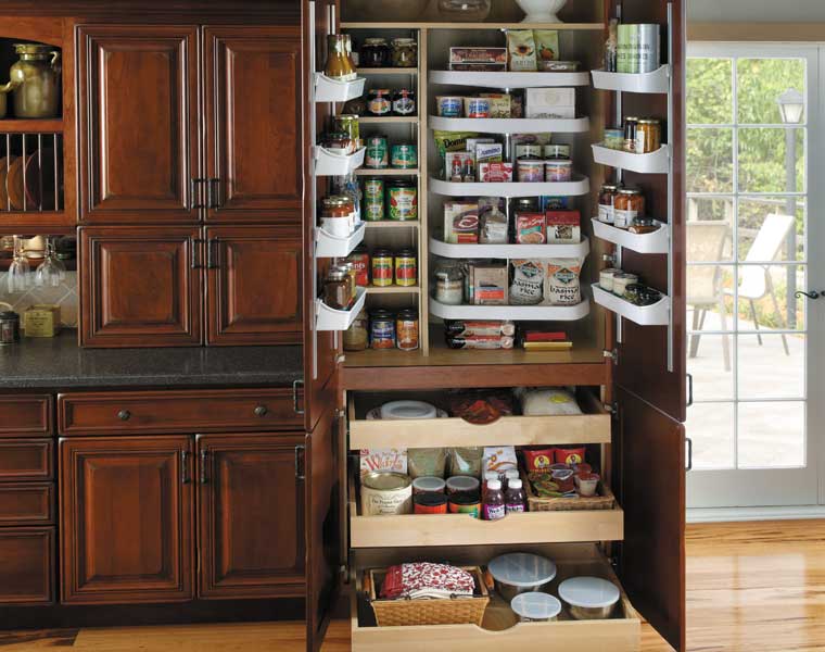 There is a wide variety of sizes, configurations and concealment options for your enclosed pantry. Shelves, trays, racks and bins are all available options.