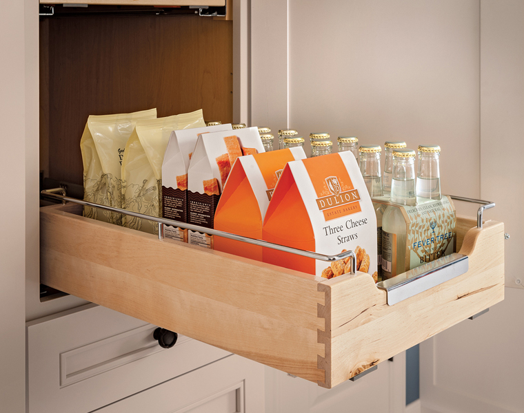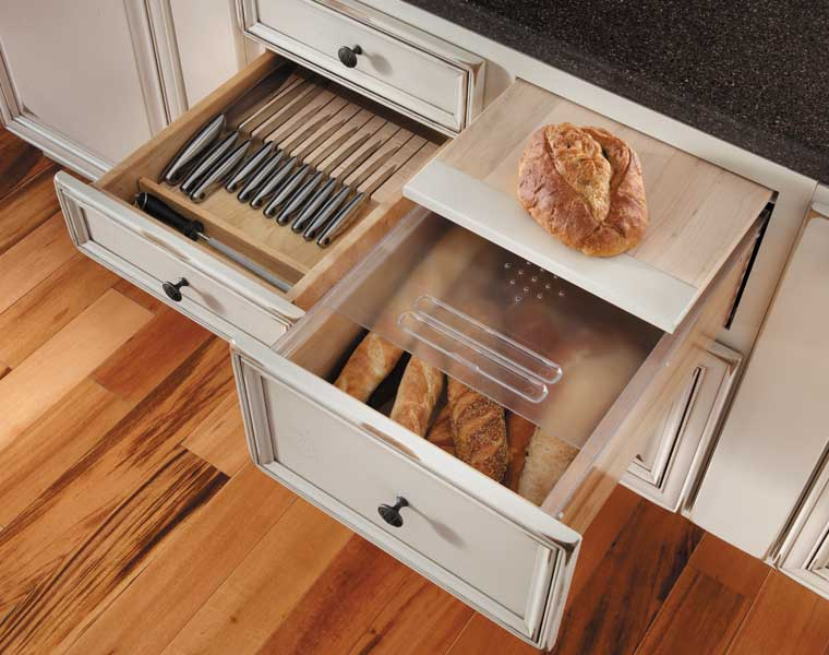 Keep your cutting board and utensils close at hand with one of the many slide and lift options. These include a variety of silverware and cutlery storage arrangements.