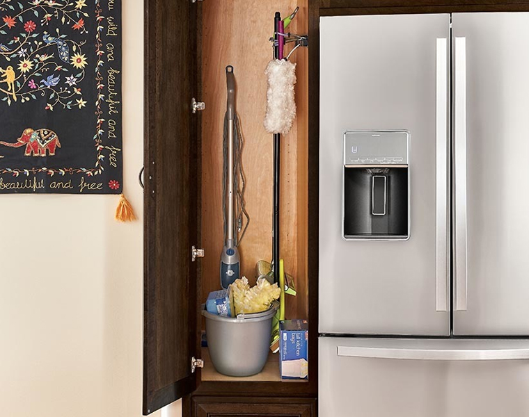 Tired of brooms and mops in the laundry room? Tall utility cabinets can be perfectly configured for convenient utility storage.